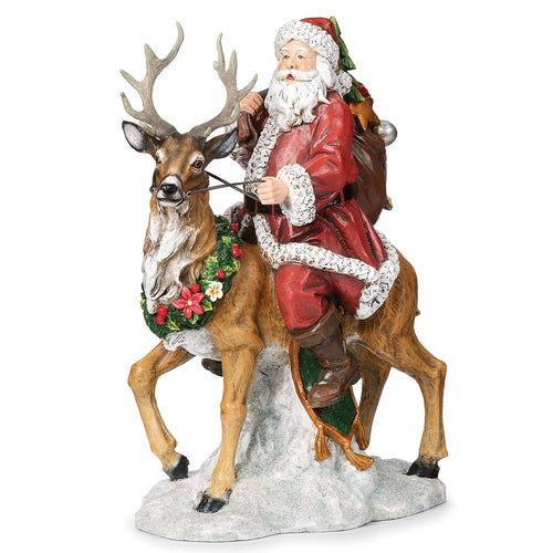 12.25" Santa Riding Deer Figurine