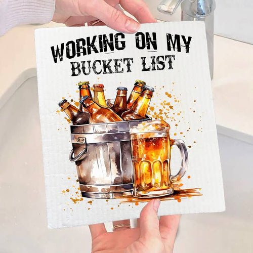 Working On Bucket List Beer Funny Swedish Dish Cloth