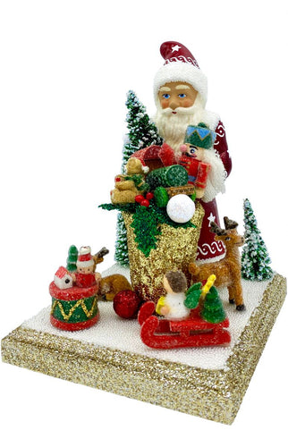 Pearled Santa with Reindeer on Base - Schaller Paper Mache Candy Container