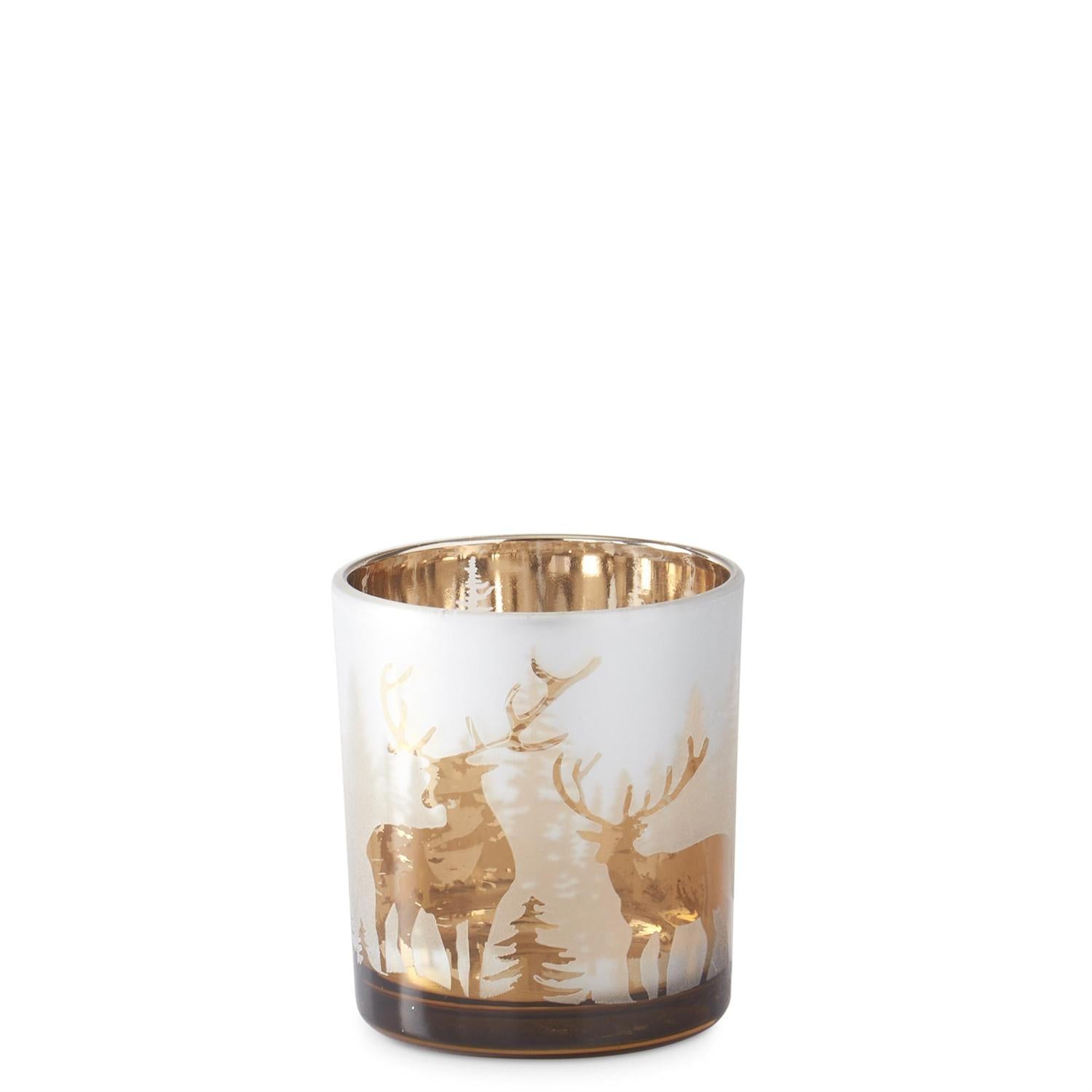 3" Frosted Glass w/Rose Gold Interior Deer Winter Scene Votive