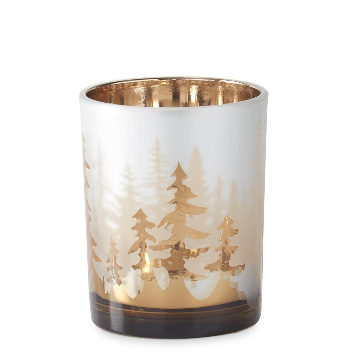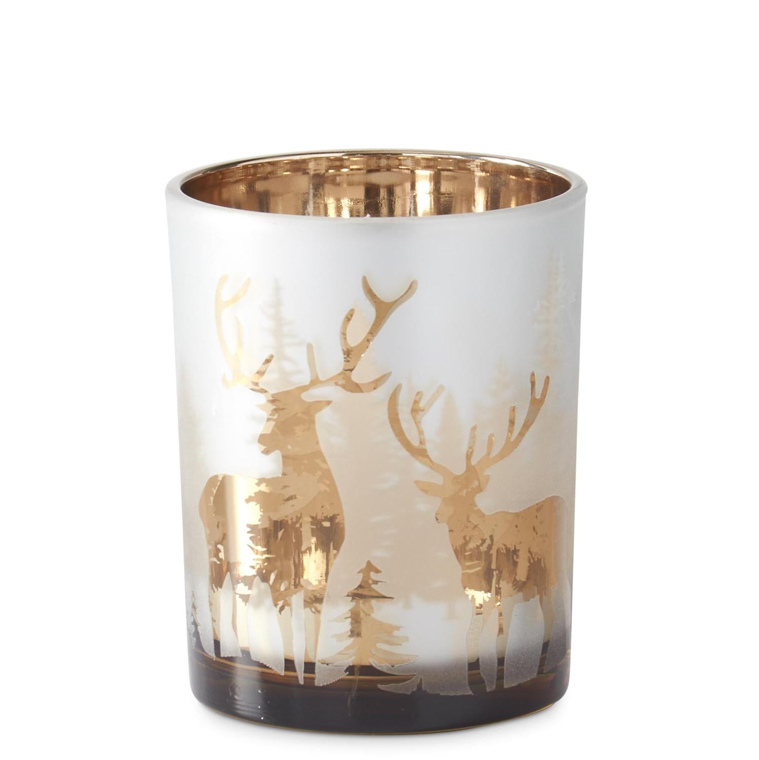 5" Frosted Glass w/Rose Gold Interior Deer Winter Scene Votive