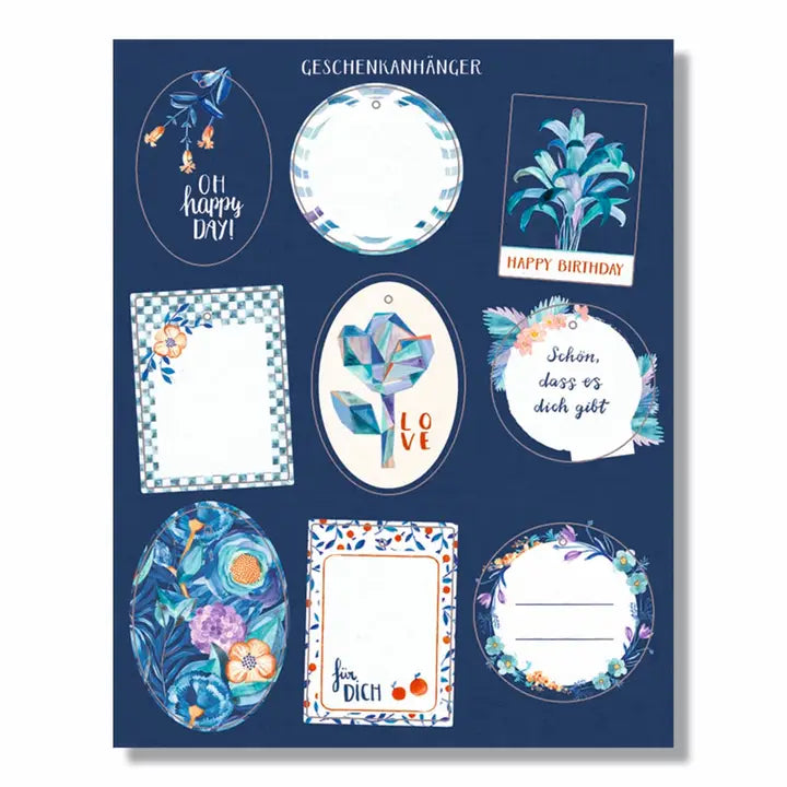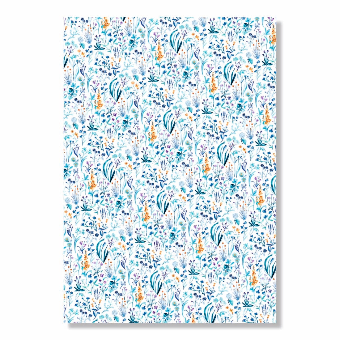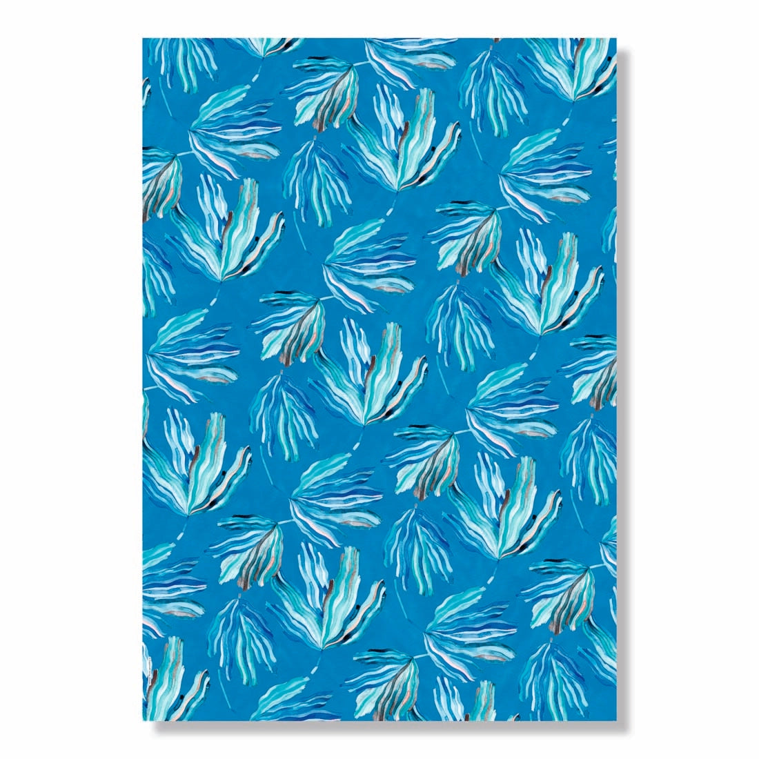 A Beautiful book containing 10 different blue wrapping paper sheets, including DIY ideas on how to create intricate paper detailing for gifts and celebrations.