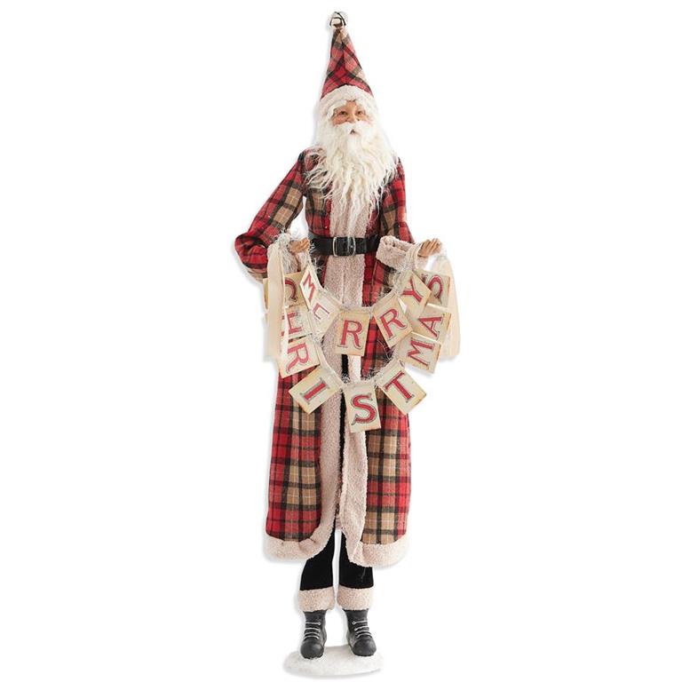 38" Santa in Plaid Jacket Holding Merry Christmas Garland
