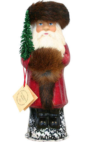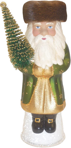 Schaller Paper Mache Candy Container - Russian Santa With Green Coat