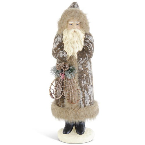 17" Brown Fur Trim Santa w/Snowshoes