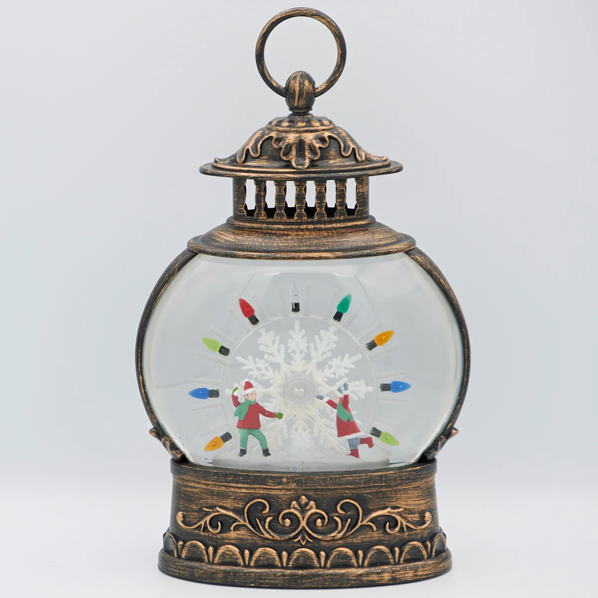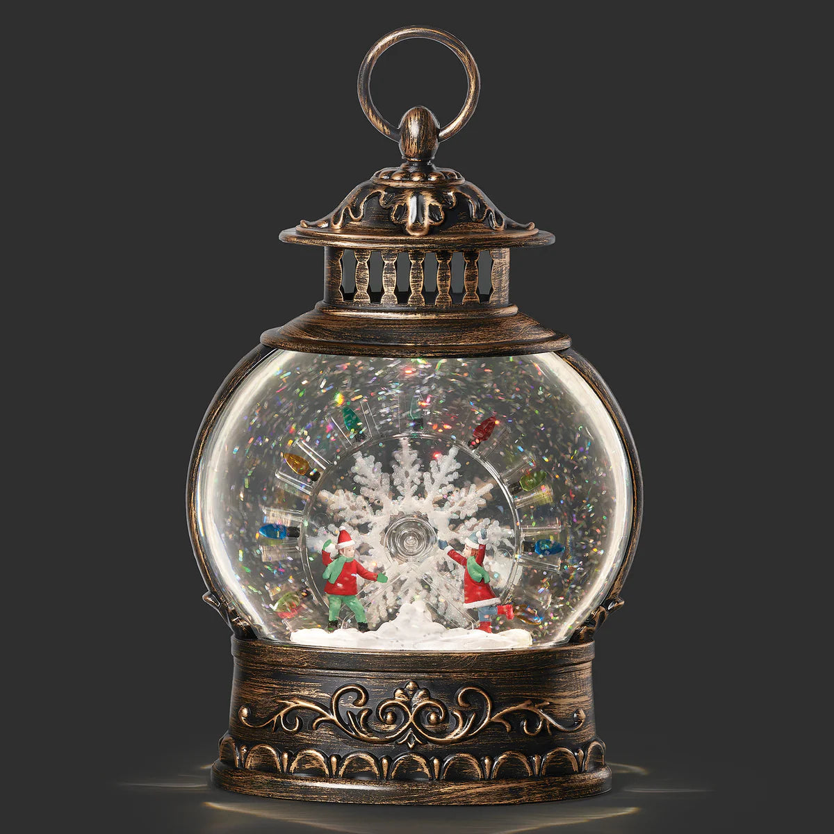 Delight in holiday whimsy with this enchanting swirl Ferris wheel. The playful scene features children enjoying a snowball fight, surrounded by swirling glitter and glowing lights that create a sense of movement and festive cheer. A joyful centerpiece for mantels, shelves, or holiday displays, it captures the magic and wonder of Christmas in motion.