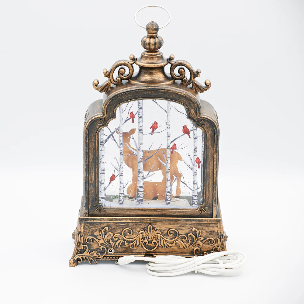 Confetti Lites Lighted Swirl Antique Lantern with Deer Family & Cardinals in Birch Trees