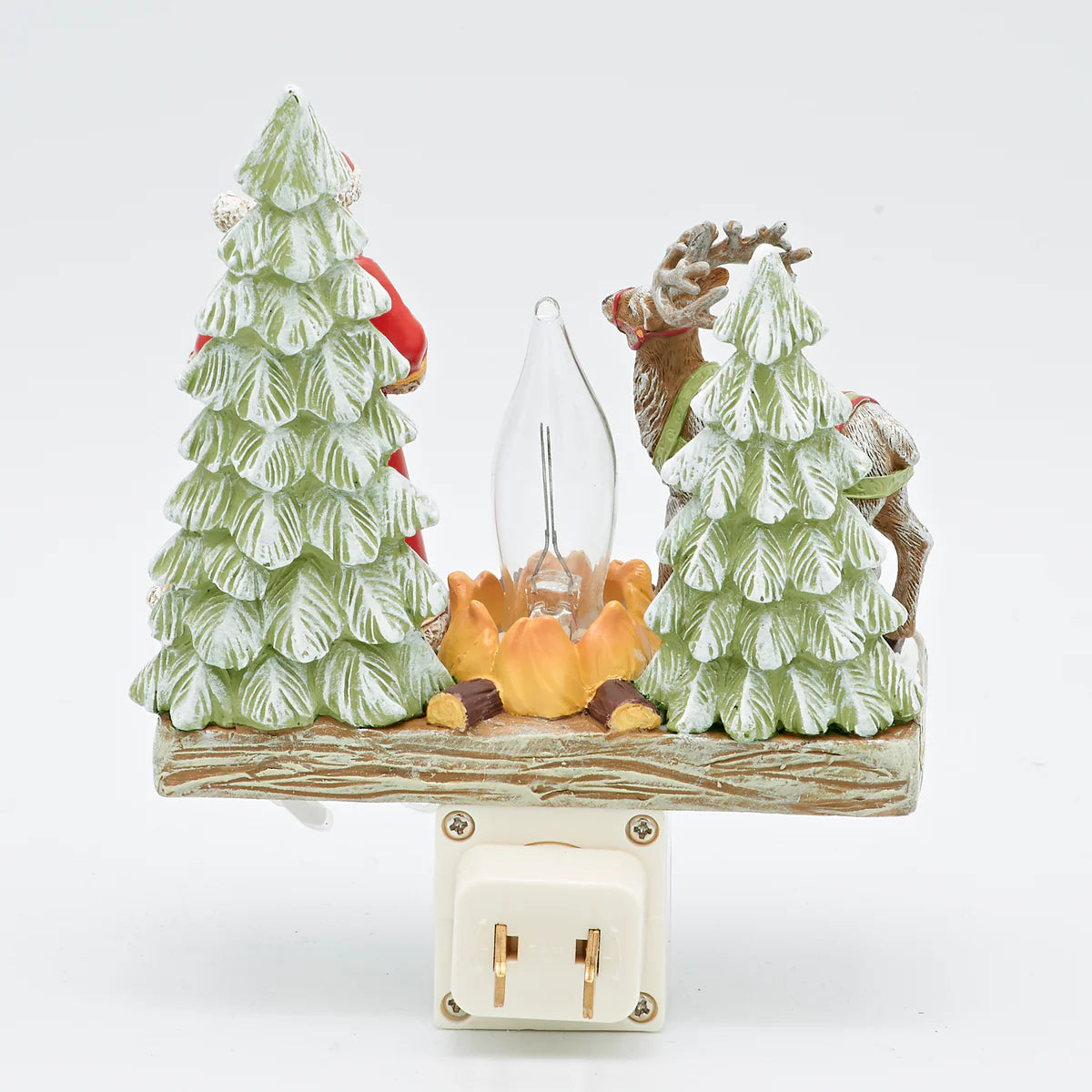 Bring festive warmth and cherished holiday charm into your home with this Santa and Reindeer Flickering Flame Night-Light. Showcasing a cozy campfire scene and a joyful duo, it plugs into any outlet and emits a gentle, animated glow—perfect for creating a welcoming atmosphere in kitchens, bedrooms, or hallways during the holiday season.