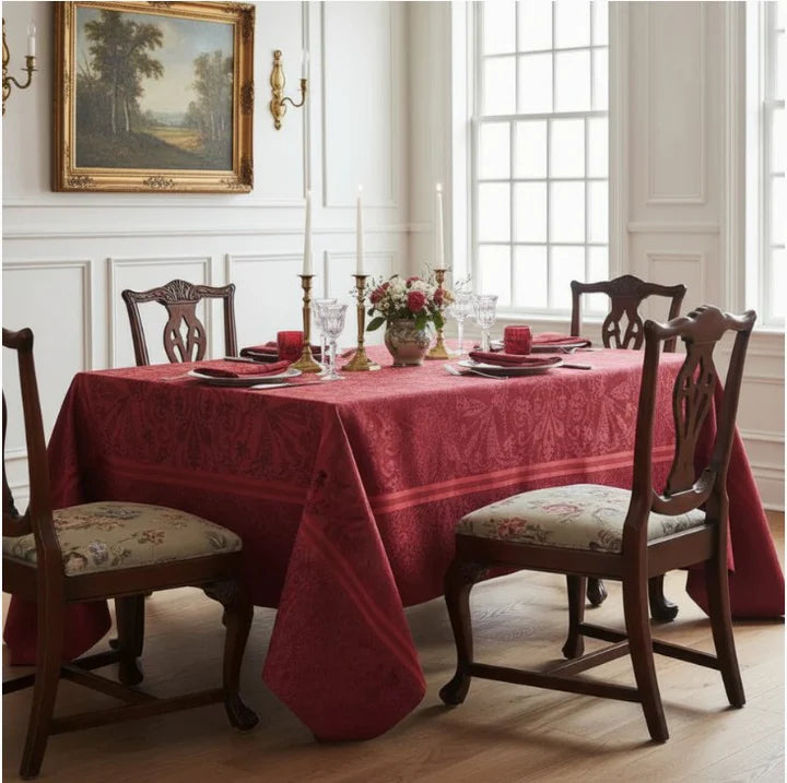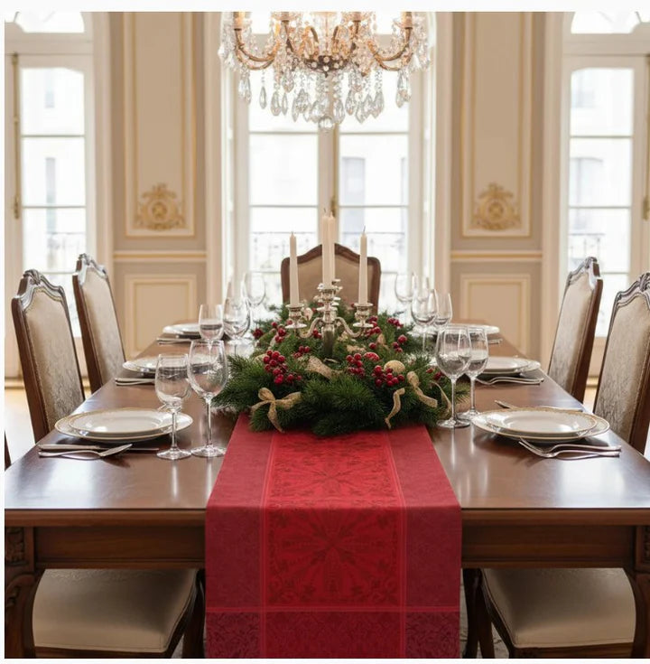 Worthy of the finest estates in France, this cloth will give a noble appearance to any gathering.  Although ideal all year round, this table runner is especially lovely for autumn and winter holiday gatherings.