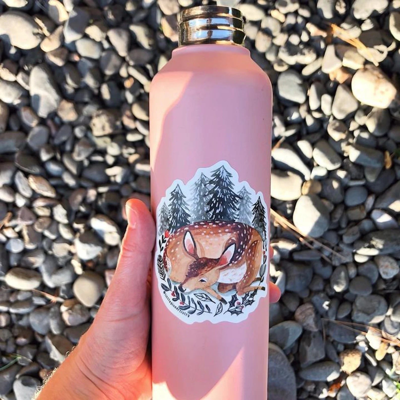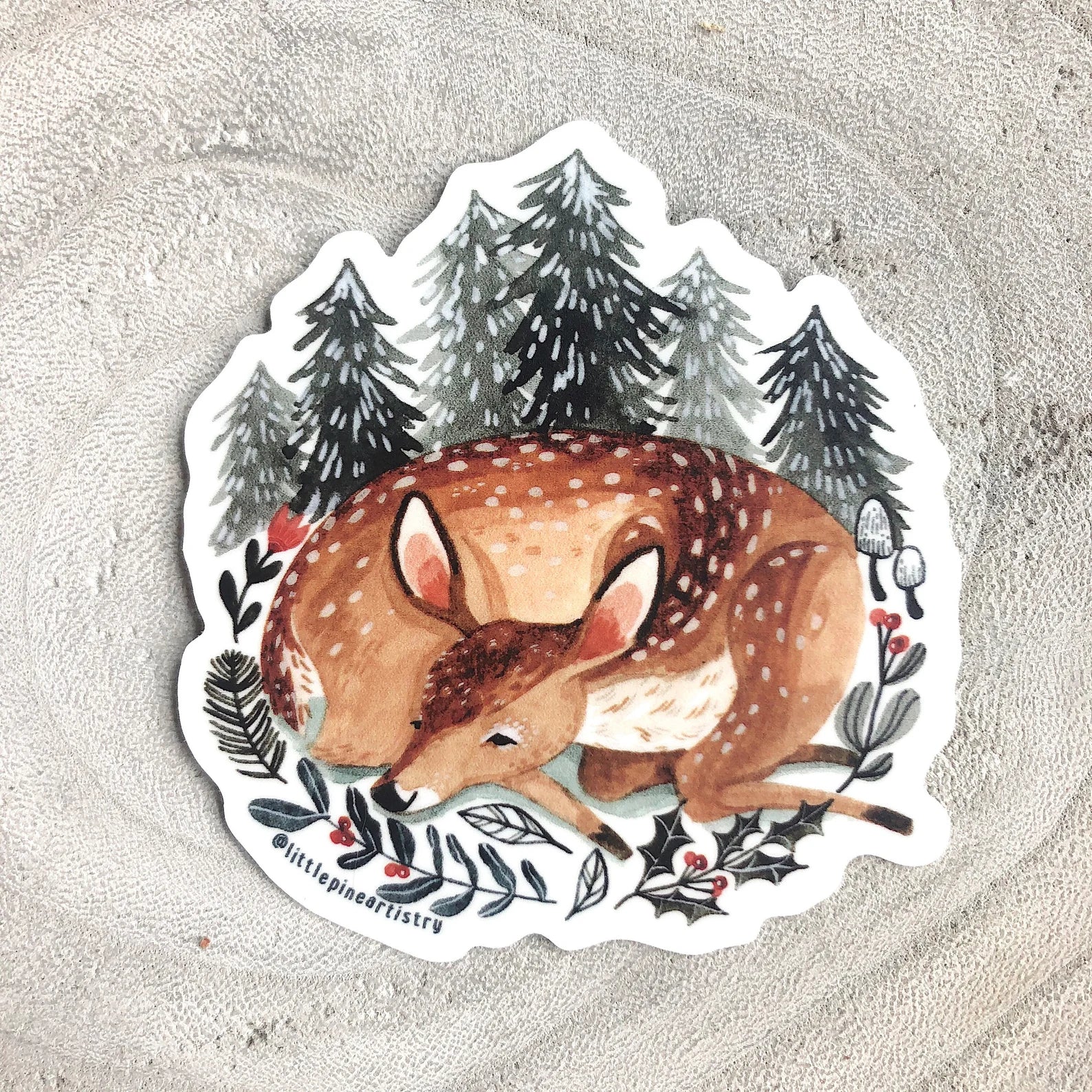 Winter Fawn sticker is a premium laminated die cut vinyl sticker with a matte finish.